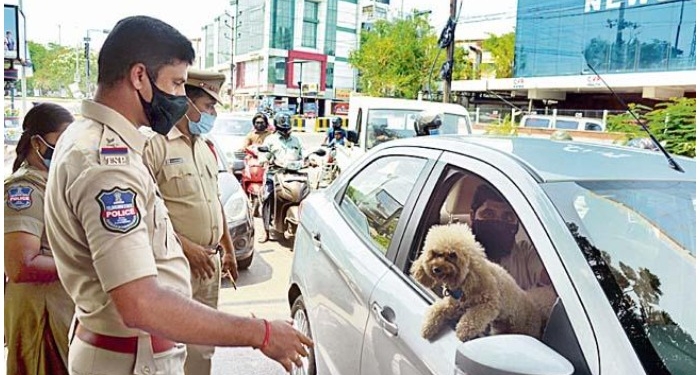 విధుల నిర్వహణలో భాగంగా ప్రతి ఒక్క వాహనాన్ని ఆపి తనిఖీ చేస్తున్న పోలీసులకు ఒక వ్యక్తి తన కారులో కుక్కను తీసుకు వెళ్తు కనిపించాడు. ఈ క్రమంలోనే లాక్ డాన్ ఆంక్షలు అమలులో ఉండగా,బయటికి ఎందుకు వచ్చారని ఎస్ఐ నవీన్రెడ్డి ప్రశ్నించగా.. అందుకు సదరు వ్యక్తి ఒక విచిత్రమైన సమాధానం చెప్పారు.