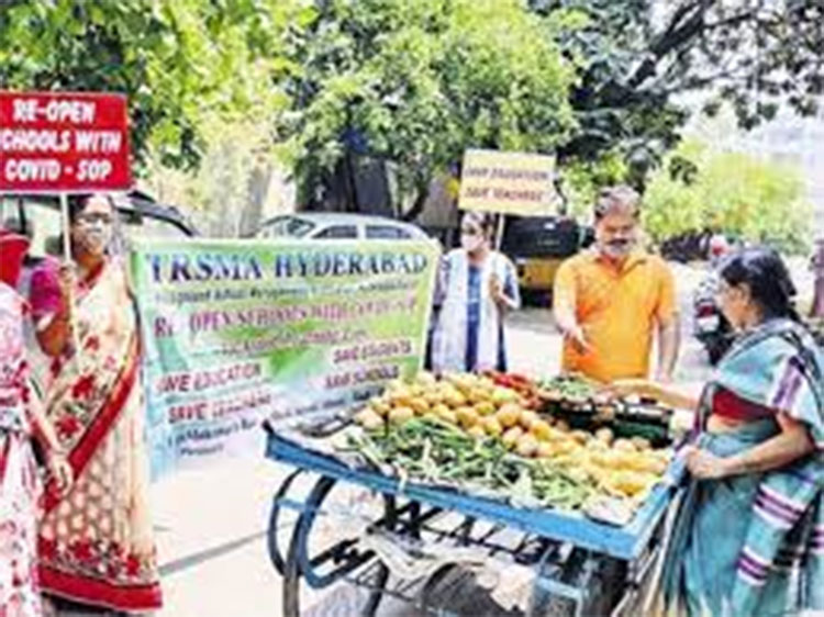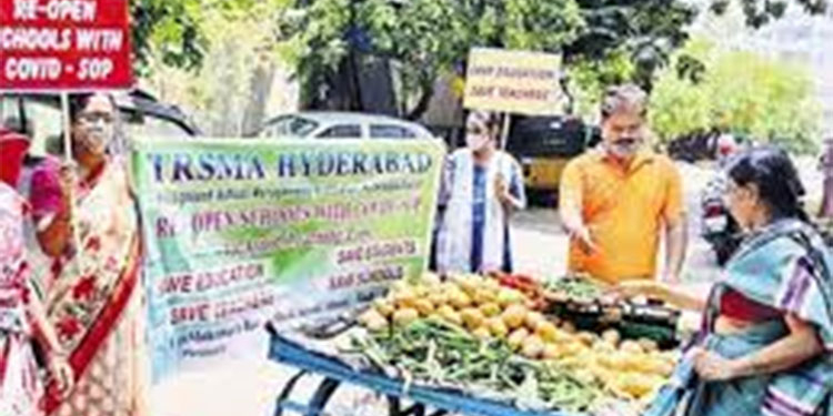 హైదరాబాద్ లోని బన్సీలాల్ పేట్ బోలక్ పూర్ ప్రాంతానికి చెందిన సెయింట్ సాయి పాఠశాల యజమాని కరోనా కారణం వల్ల కూరగాయల వ్యాపారి గా మారారు. ఈ పాఠశాల యజమాని కూరగాయలను అమ్ముతూ త్వరలోనే పాఠశాలలో రీ ఓపెన్ చేయాలని రోడ్డుపై నిరసన తెలియజేశారు.